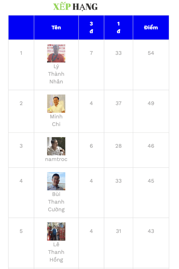Chúc mừng Lý Thành Nhân giải 1, Minh Chí giải 2 và giải 3 là Namtroc